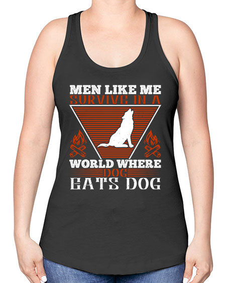 men like me survive in a world where dog eats dog 215# - dogs -Racerback Tank