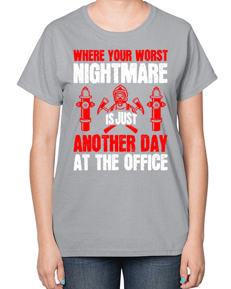 Where your worst nightmare is just another day at the office Style 1637# - fire fighter- Ladies T-Shirt