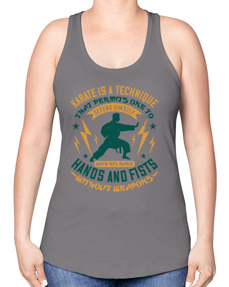karate is a technique that permits one to defend himself with his bare hands and fists without weapons 389# - karate MMA -Racerback Tank