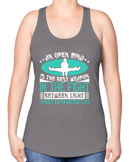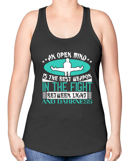 an open mind is the best weapon in the fight between light and darkness 111# - karate MMA -Racerback Tank