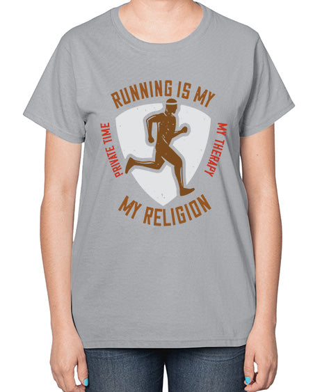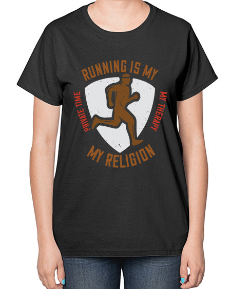 running is my private time my therapy my religion 508# - running- Ladies T-Shirt