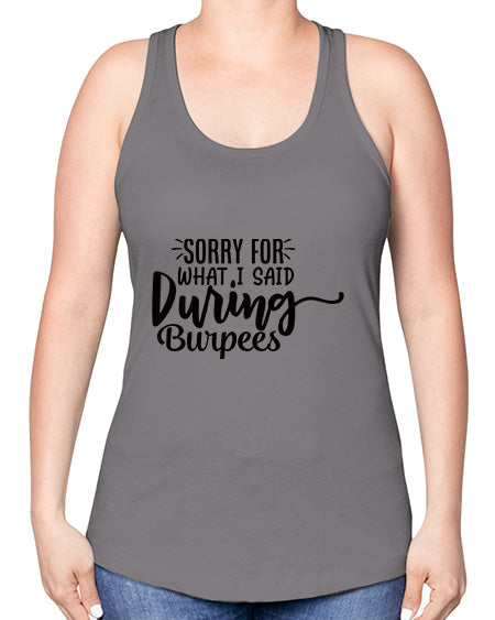 sorry for what i said during burpees 71# - gym -Racerback Tank