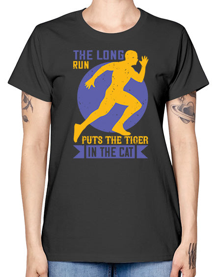 the long run puts the tiger in the cat 549# - running - Missy T-Shirt