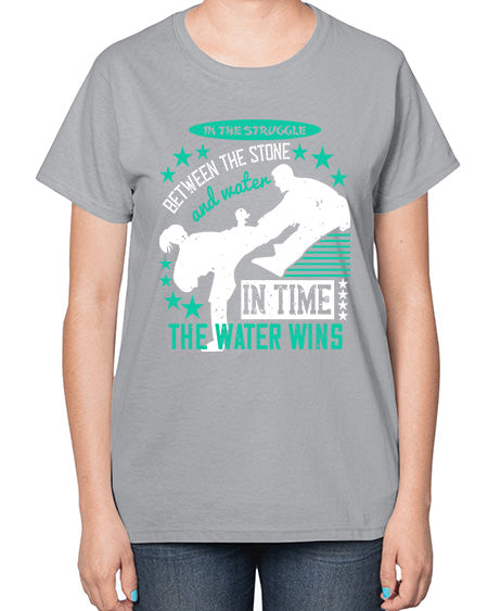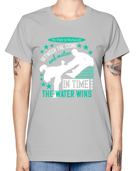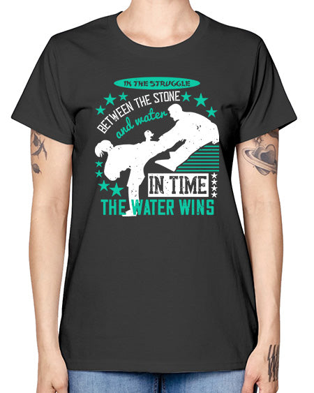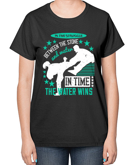 in the struggle between the stone and water in time the water wins 335# - karate MMA- Ladies T-Shirt