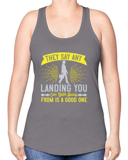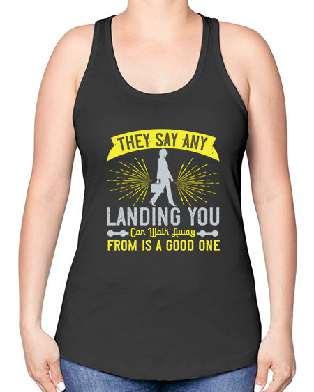 they say any landing you can walk away from is a good one 572# - walking -Racerback Tank