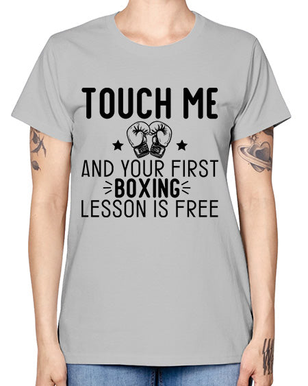 touch me and your first boxing lesson is free 583# - boxing- Ladies T-Shirt