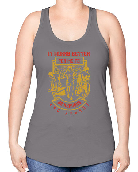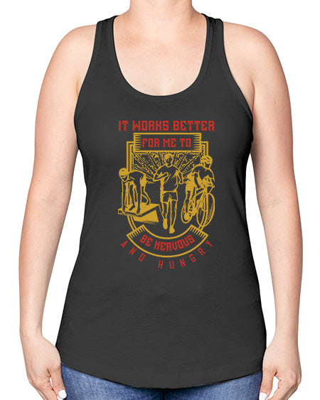 it works better for me to be nervous and hungry 346# - running -Racerback Tank