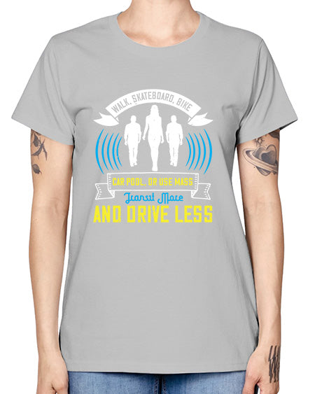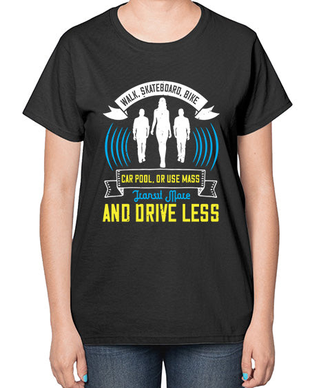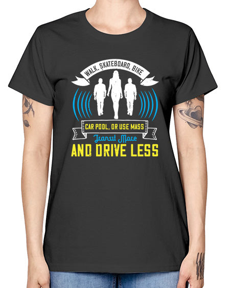 walk skateboard bike car pool or use mass transit more and drive less 594# - walking- Ladies T-Shirt