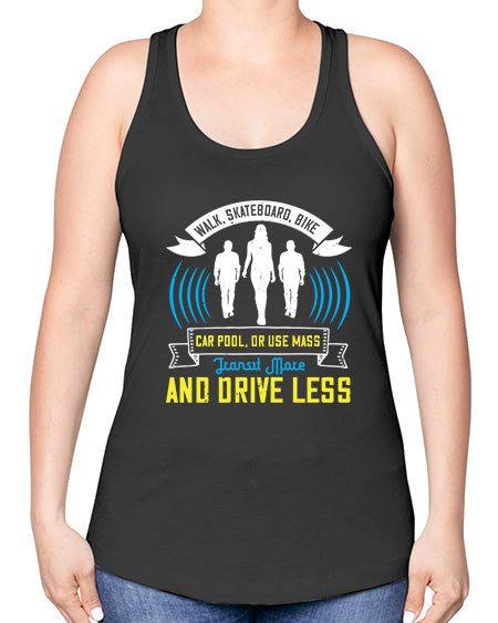 walk skateboard bike car pool or use mass transit more and drive less 594# - walking -Racerback Tank