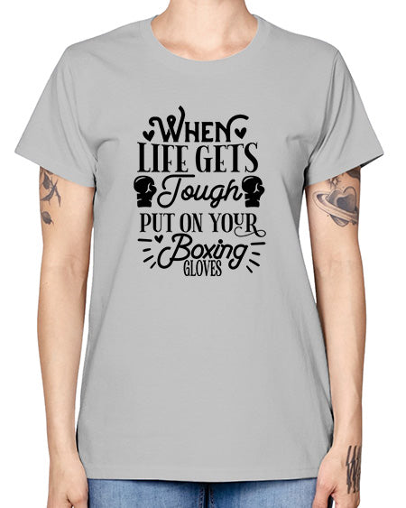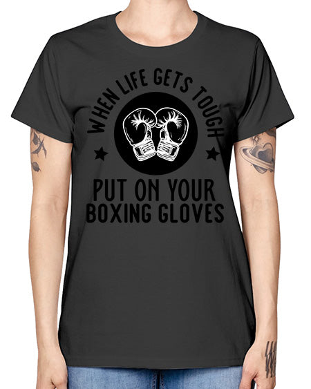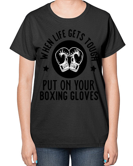 when life gets tough put on your boxing gloves 599# - boxing- Ladies T-Shirt