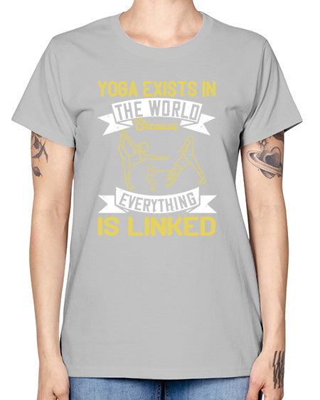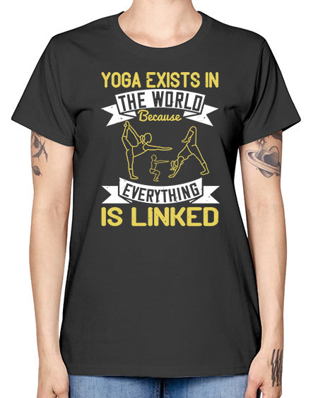 yoga exists in the world because everything is linked 617# - yoga- Ladies T-Shirt