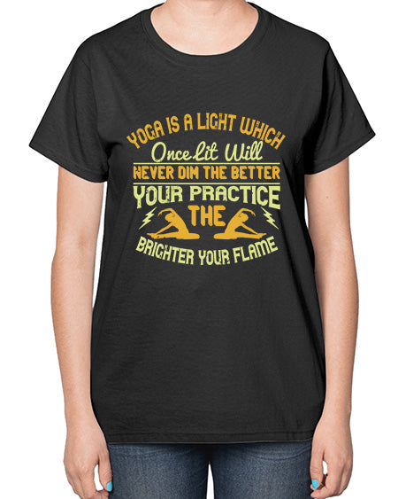 yoga is a light which once lit will never dim the better your practice the brighter your flame 620# - yoga- Ladies T-Shirt