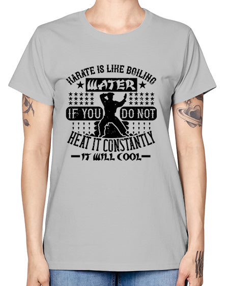 karate is like boiling water if you do not heat it constantly it will cool 394# - karate MMA- Ladies T-Shirt