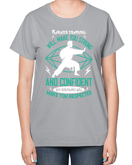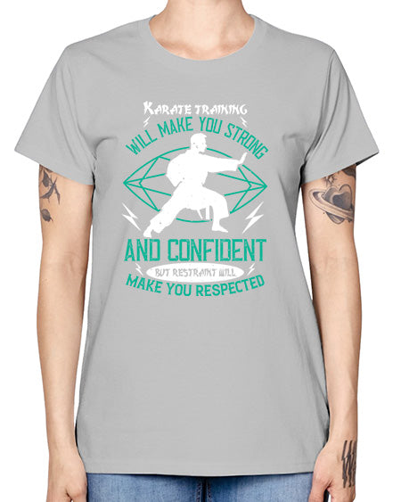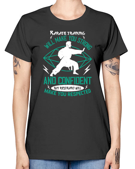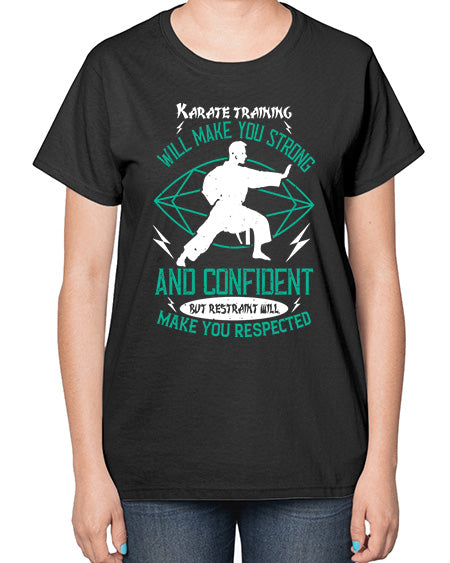 karate training will make you strong and confident but restraint will make you respected 398# - karate MMA- Ladies T-Shirt