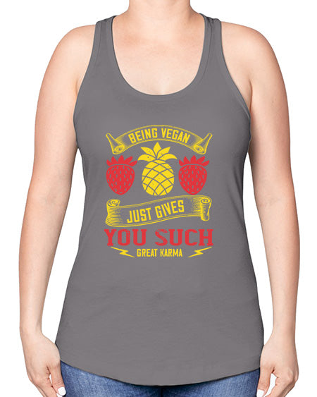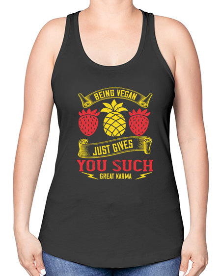 being vegan just gives you such great karma 53# - vegan -Racerback Tank