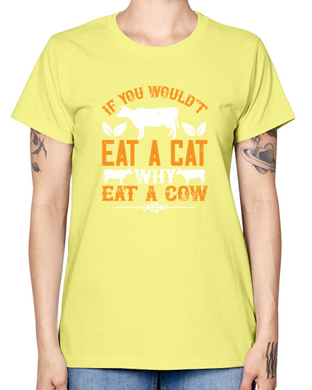 if you wouldt eat a cat why eat a cow 267# - vegan- Ladies T-Shirt
