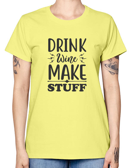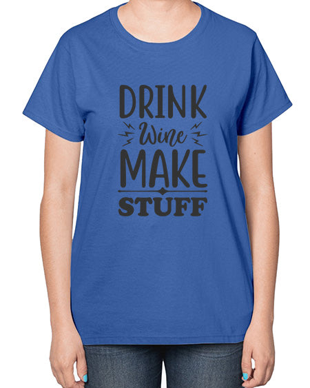 DRINK WINE MAKE STUFF 926# - wine- Ladies T-Shirt