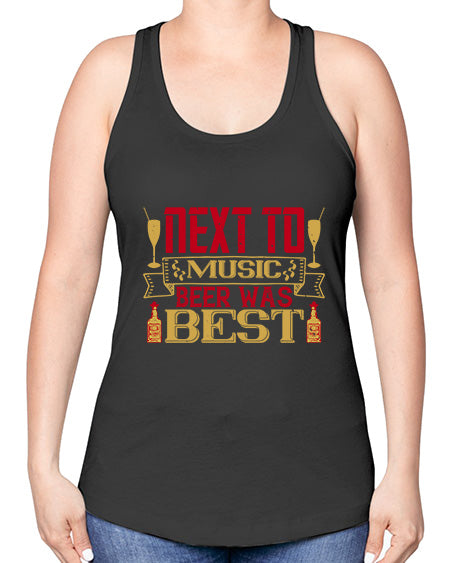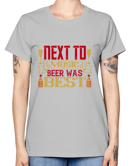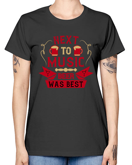 next to music beer was best 357# - drinking- Ladies T-Shirt