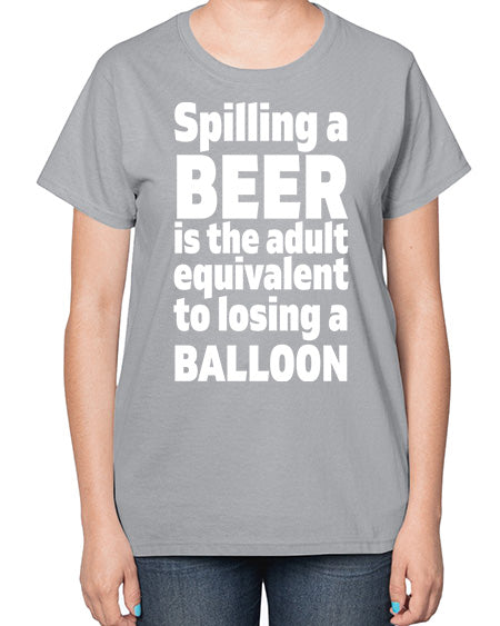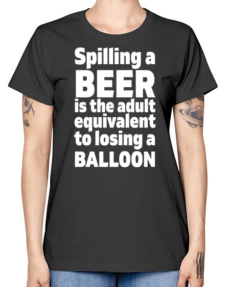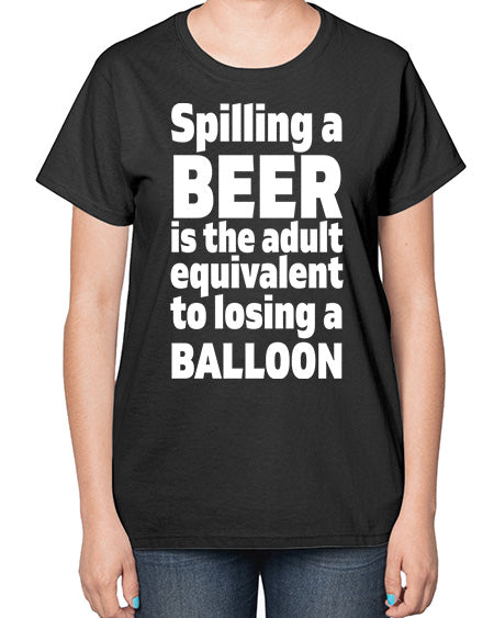 spilling a beer is the adult equivalent to losing a balloon 1563# - beer- Ladies T-Shirt