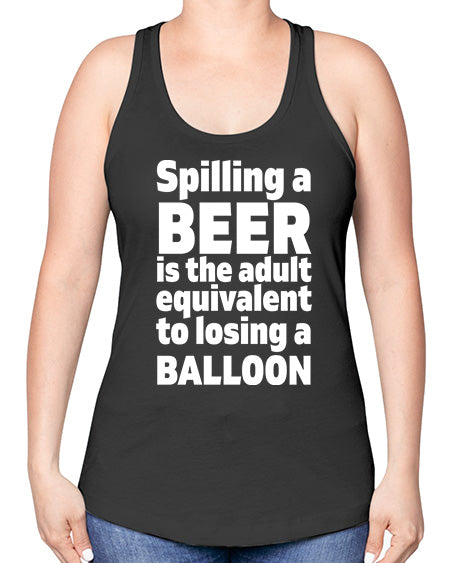 spilling a beer is the adult equivalent to losing a balloon 1563# - beer -Racerback Tank