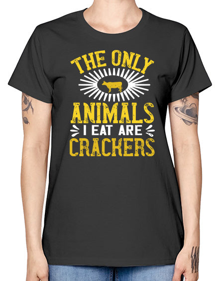 the only animals i eat are crackers 418# - vegan- Ladies T-Shirt