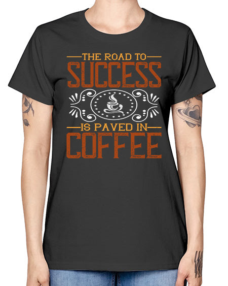 the road to success is paved in coffee 419# - coffee- Ladies T-Shirt