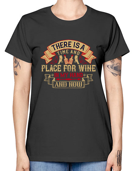 there is a time and place for wine in my hand and now 422# - drinking- Ladies T-Shirt