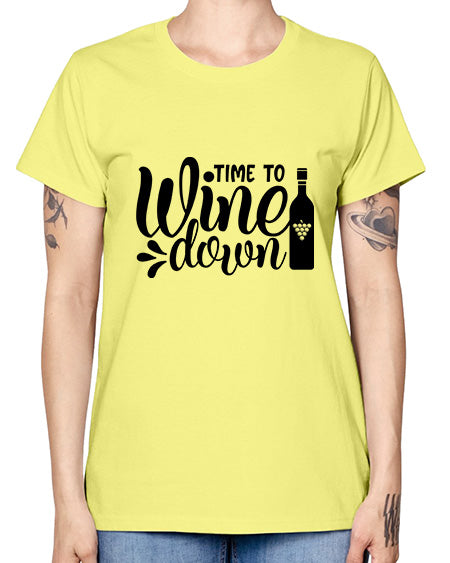 time to wine down 441# - wine- Ladies T-Shirt