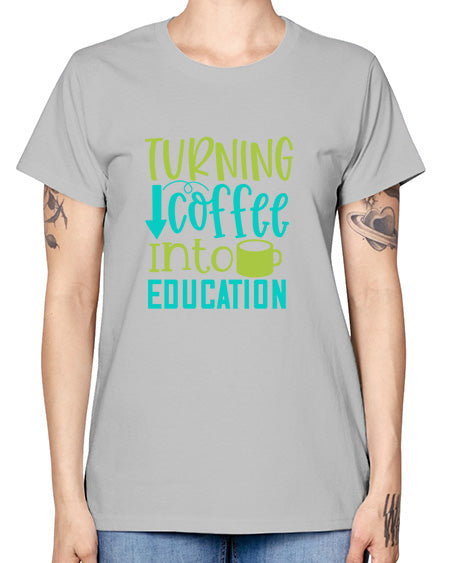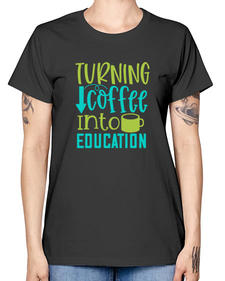 turning coffee into education 1676# - coffee- Ladies T-Shirt