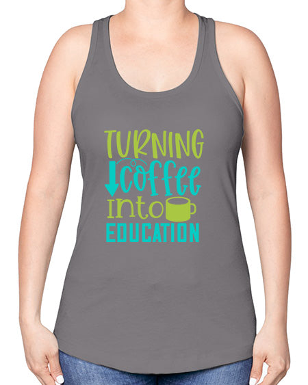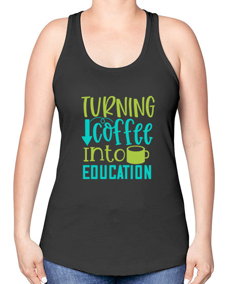 turning coffee into education 1676# - coffee -Racerback Tank