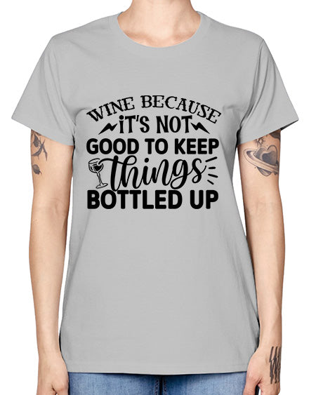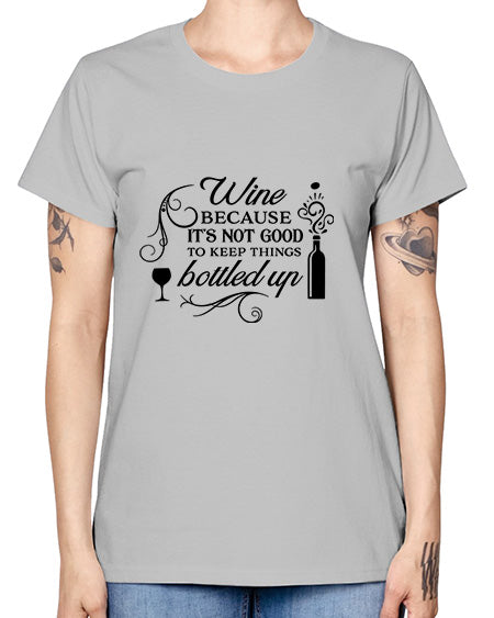 wine because it s not good to keep things bottled up 1729# - wine- Ladies T-Shirt