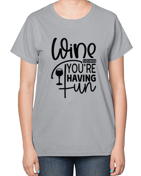 Wine Flies When Youre Having Fun 1732# - wine- Ladies T-Shirt
