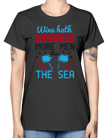 wine hath drowned more men than the sea 482# - wine- Ladies T-Shirt