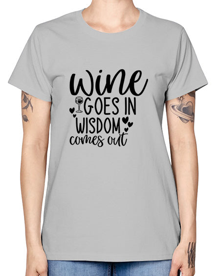 Wine goes in wisdom comes out 1735# - wine- Ladies T-Shirt