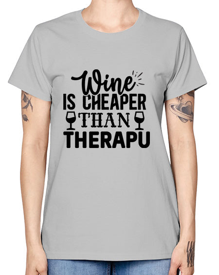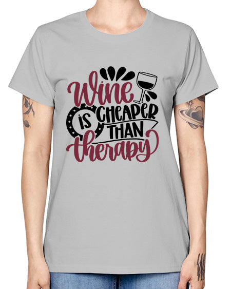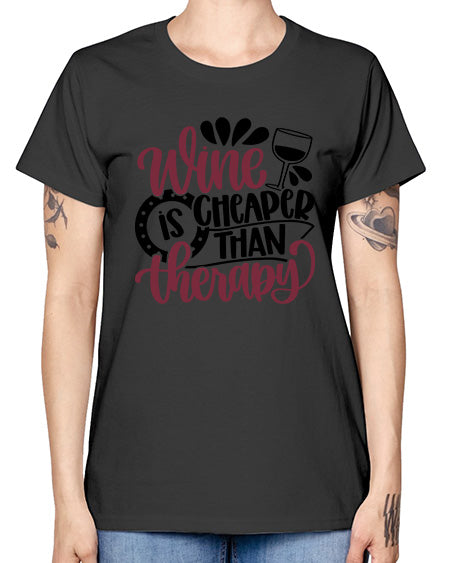 wine is cheaper than therapy 1742# - wine- Ladies T-Shirt