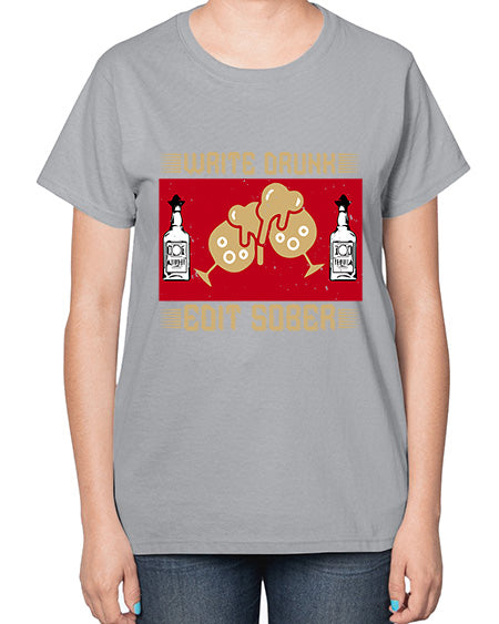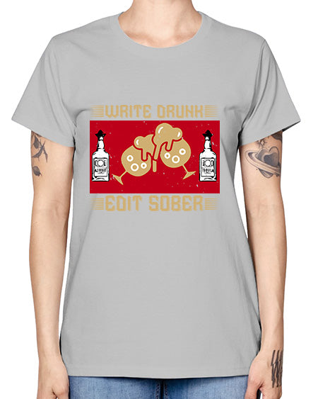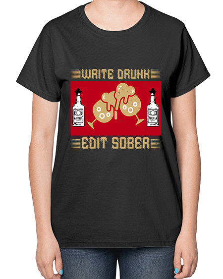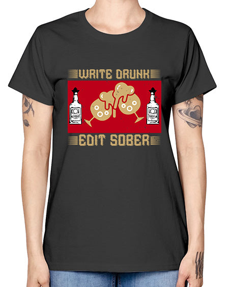 write drunk edit sober 497# - drinking- Ladies T-Shirt