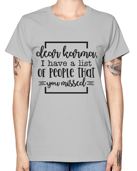 dear karma I have a list of people that you missed 370# - funny -Racerback Tank