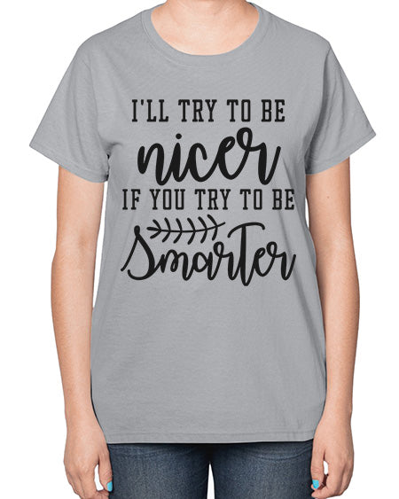 Ill try to be nicer if you try to be smarter 628# - funny- Ladies T-Shirt