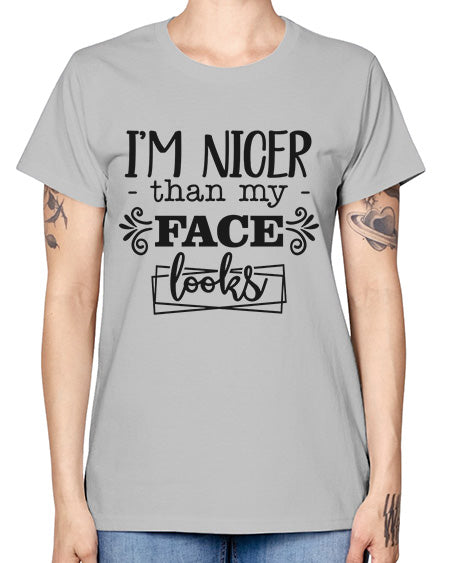 Im nicer than my face looks 640# - funny- Ladies T-Shirt