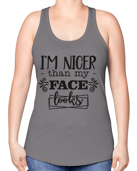 Im nicer than my face looks 640# - funny -Racerback Tank
