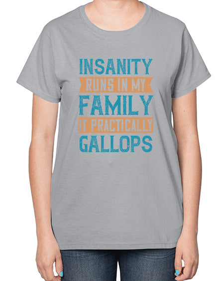 Insanity runs in my family It practically gallops 47# - funny- Ladies T-Shirt