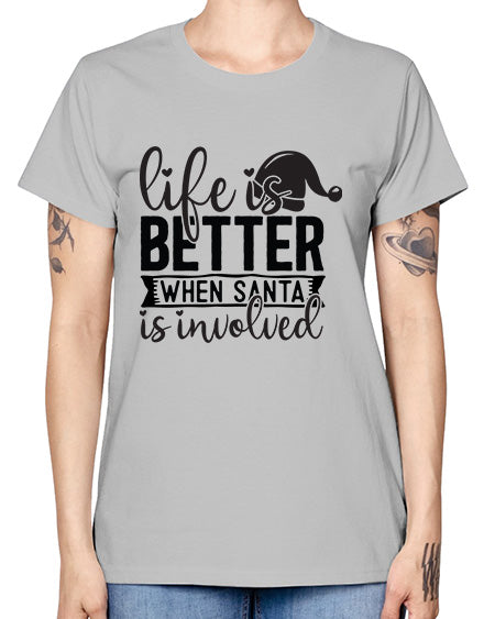 Life Is Better When Santa Is Involved 731# - funny- Ladies T-Shirt