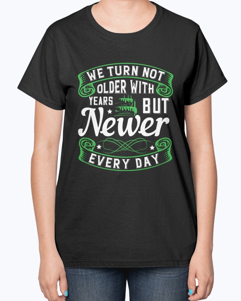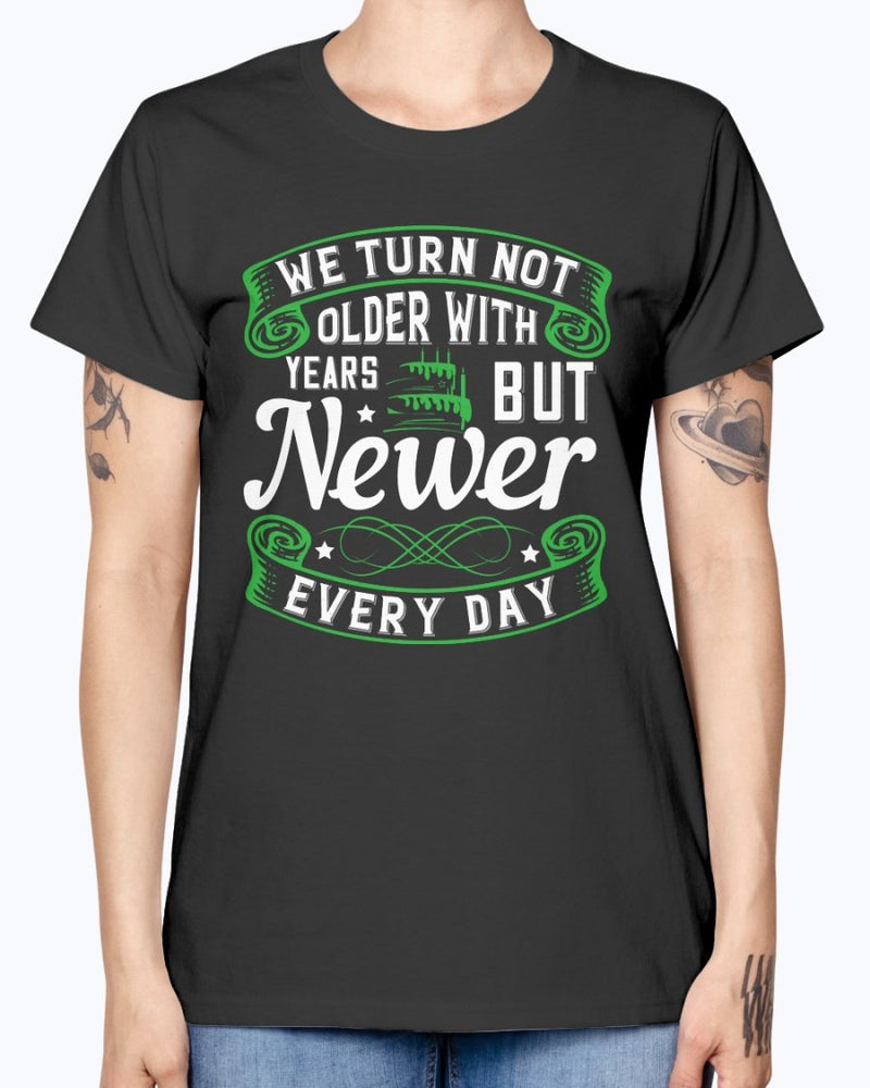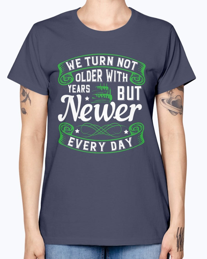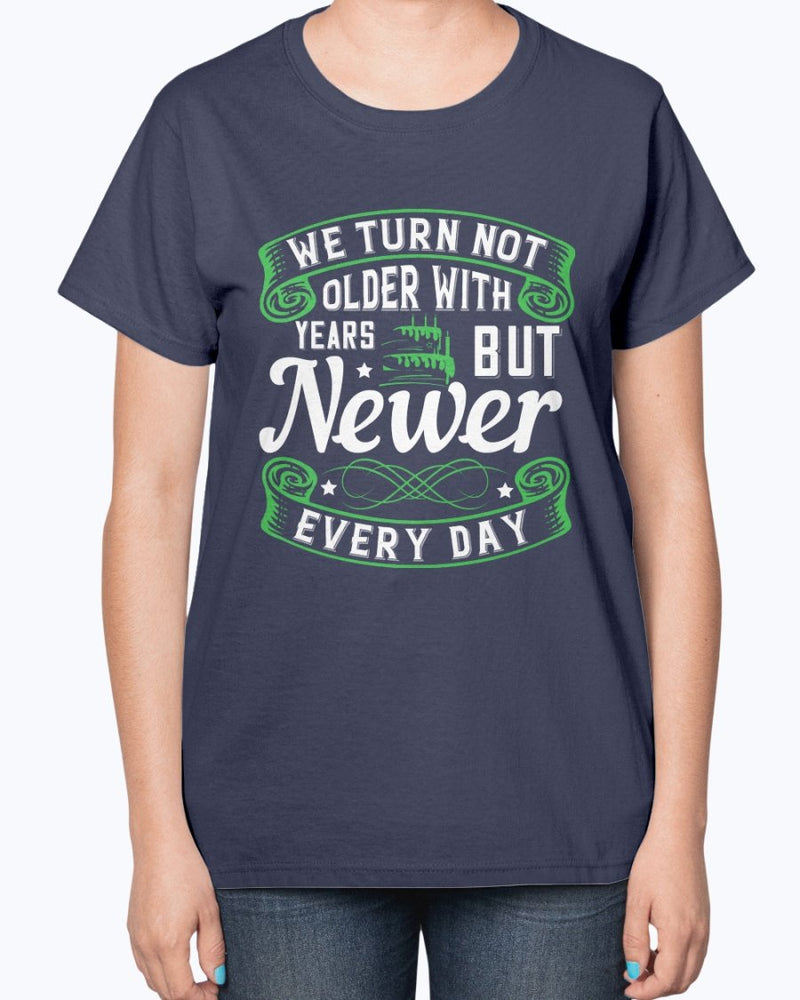 We turn not older with years, but newer every day - Birthday -Ladies T-Shirt