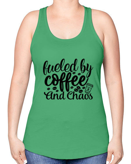 fueled by coffee and chaos 20# - sarcastic -Racerback Tank