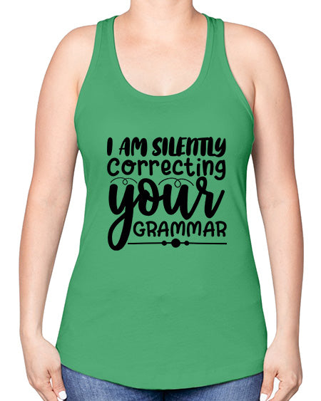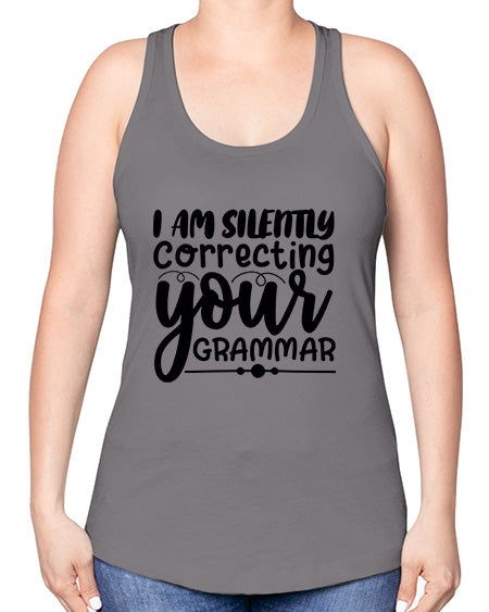 i am silently correcting your grammar 29# - sarcastic -Racerback Tank