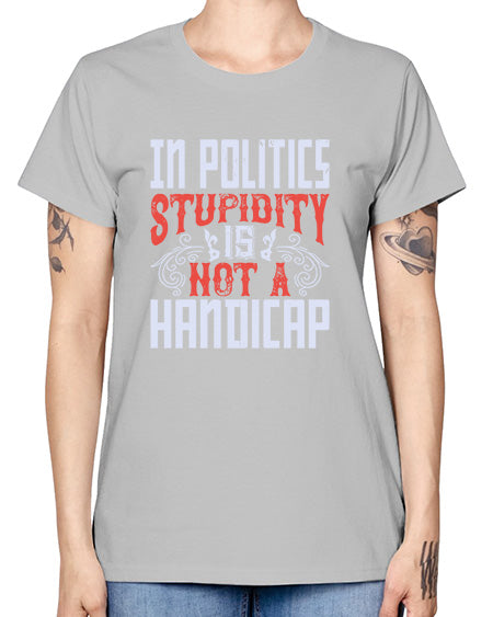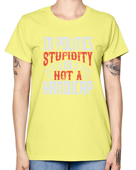 In politics stupidity is not a handicap 658# - graphic- Ladies T-Shirt