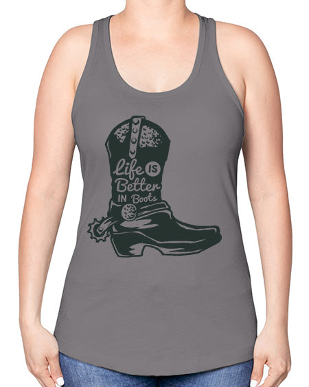 life is better in boots 730# - western -Racerback Tank