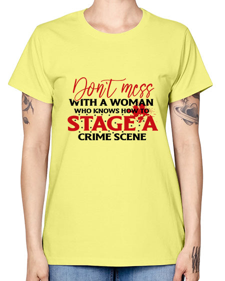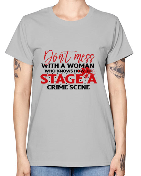 dont mess with a woman who knows how to stage a crime scene 386# - true crime - Missy T-Shirt