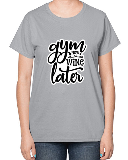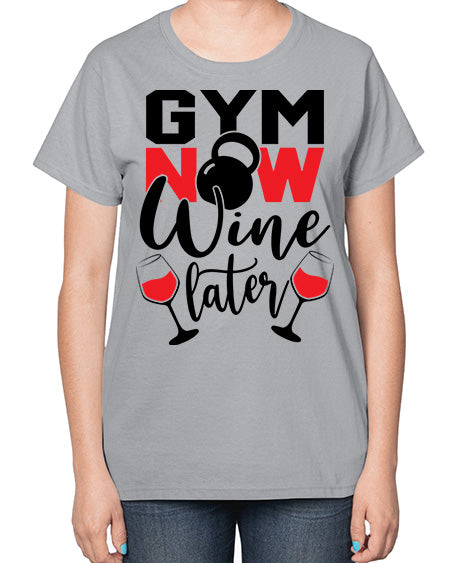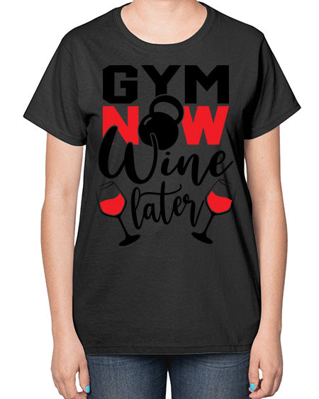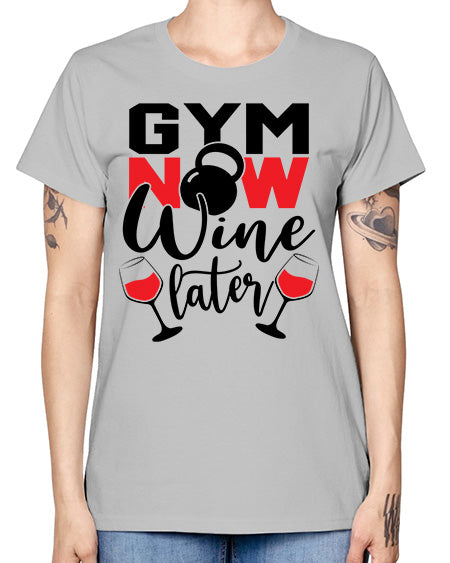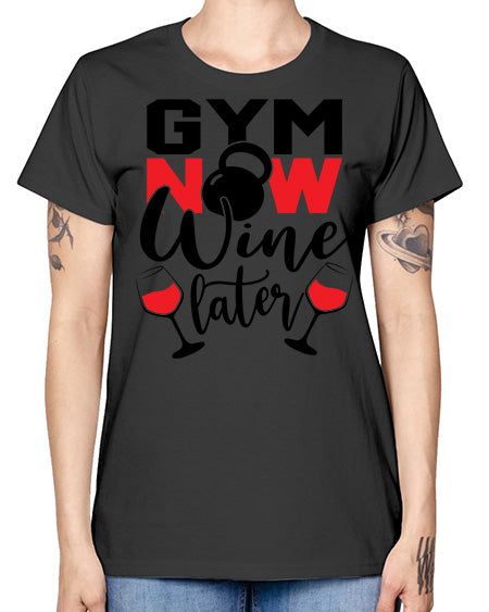 Gym now wine later 246# - gym- Ladies T-Shirt