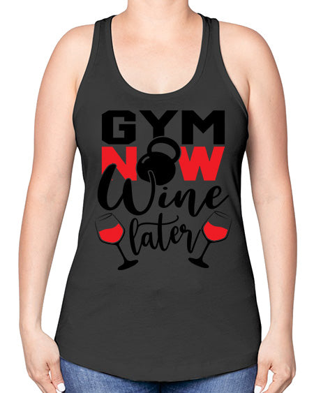 Gym now wine later 246# - gym -Racerback Tank